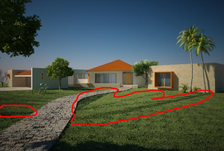 Hola a todos, finjense que al volmen dónde está el pasto que tiene unas curvas, al modelar como línea y después extruirlo o importarlo desde el AutoCAD, me salen unas líneas o manchas, al renderizar el material de césped, aquí una imagen para que vean. Gracias por su ayuda, me urge resolverlo.