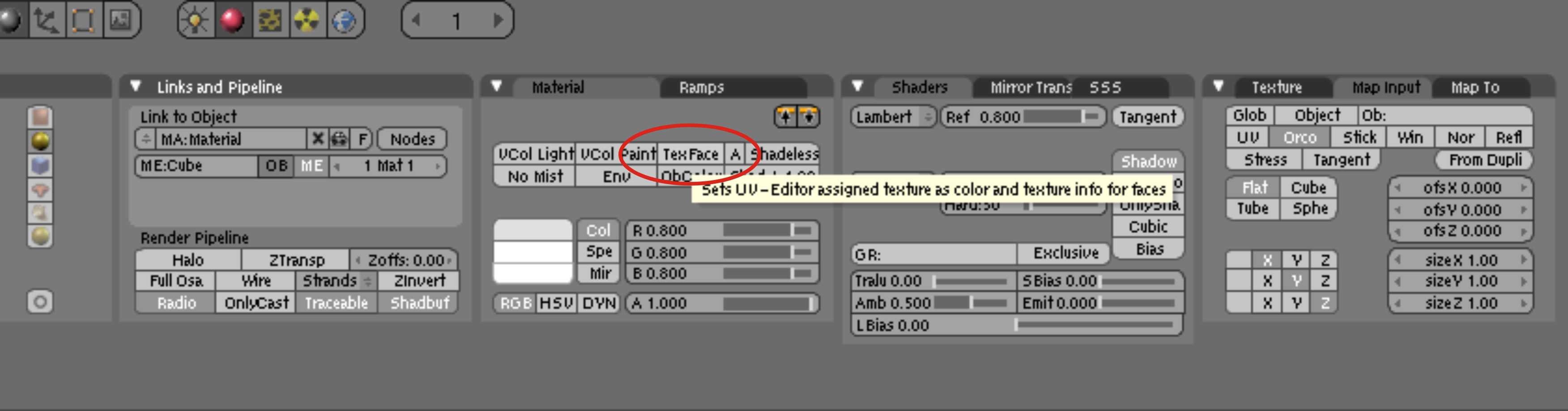 http://apuntesdeblender3.iespana.es/uv.htm. Al final del tutorial te lo pone. F5 > material > Textface.
