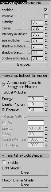 La iluminación está hecha con un Vray Sun (intensity multiplier= 0.05), target Camera.