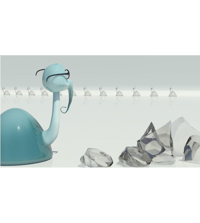 Vaya, esto es muy intelectual para mí, la verdad es que creo que el modelado está muy básico, lo mismo con la animación, si te fijas bien no es físicamente correcta ya que, cuando el pavo mueve al otro de cristal apenas lo taca y el otro tiende a tambalearse de una forma muy extraña en base a su forma, como muy forzado, pero esto lo digo yo que no soy animador, ya seguro alguien que sepa del tema te lo podrá explicar mejor. (al menos así lo veo yo.