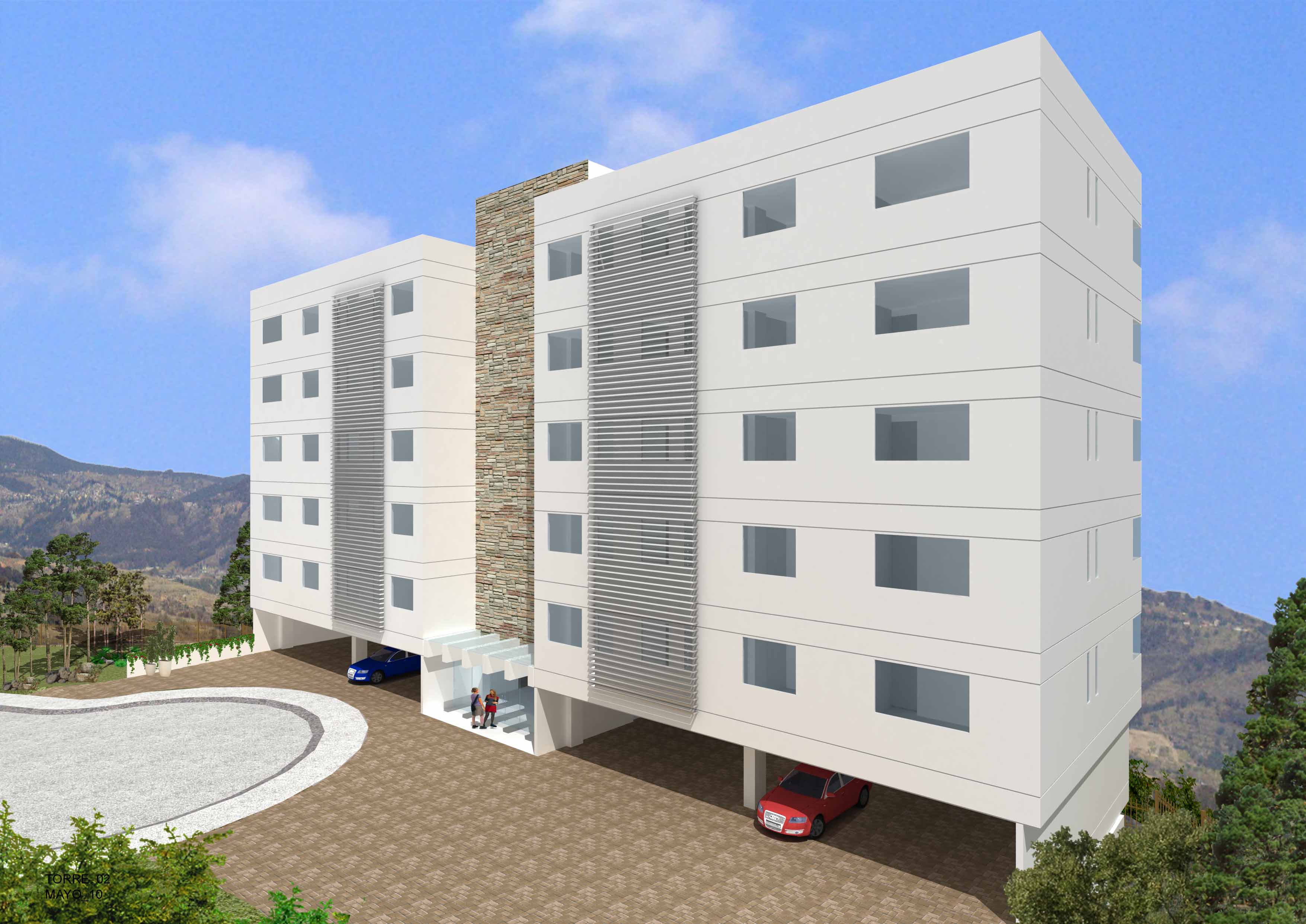 Bueno Alberto, te aconsejo que los ventanales tengan más reflejo para evitar que se vea vacío el edificio. Por lo general las cámaras para los edificio son desde planta hacia arriba.