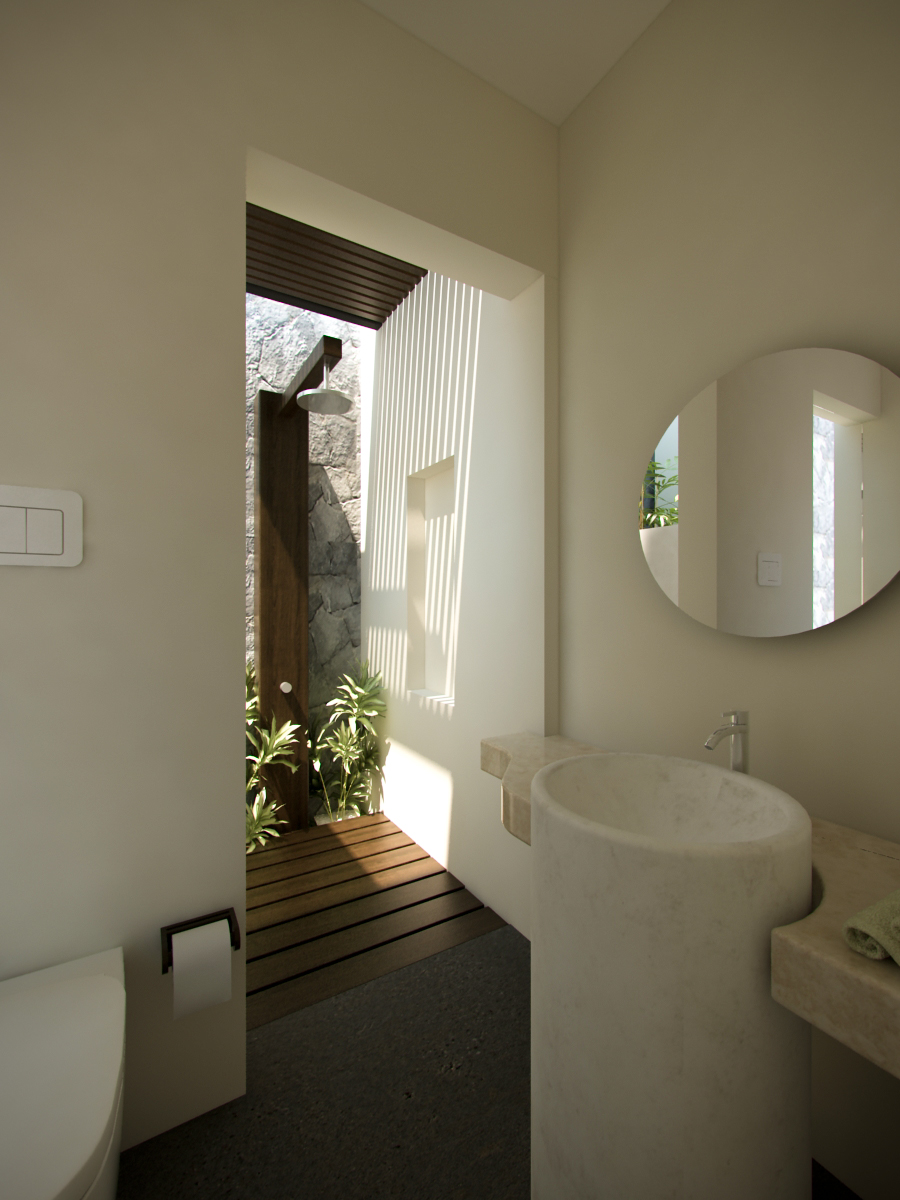 Buenas, están atractivos esos baños y las imágenes tienen buena iluminación, en general buenísimos. Respecto al comentario de mensajero76 de la cámara creo que el problema no es la deformación que como el dice es necesaria, si no estoy mal usaste un camera correction y ahí es que queda raro, en mi opinión si vas a deformar la imagen deberías dejar que se inclinen las verticales, y ya se hizo largo así que, una última cosa, el piso de la ducha de la segunda imagen está muy plano.