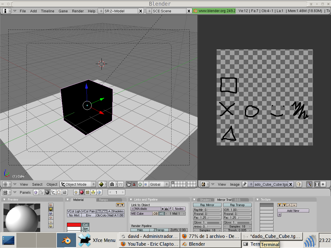 * he hecho un cubo de muestra. Le hago UV mapping y abro la imagen (en mi caso con Gimp).