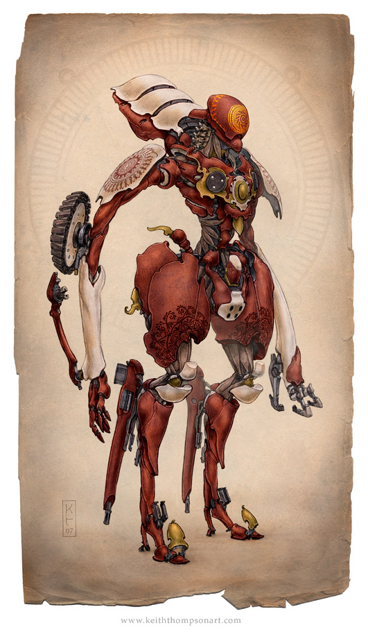 Hola a todos, he comenzado ha modelar mi primer personaje (robot), ya veremos lo que sale. El diseño es de Keith Thompson (una bestia parda dibujando), podría haber escogido otro robot más sencillo para empezar(soy un amante de los robots y mecanismos), pero el Dajal este, lo tengo fichado desde hace tiempo y ya le ha llegado su hora.