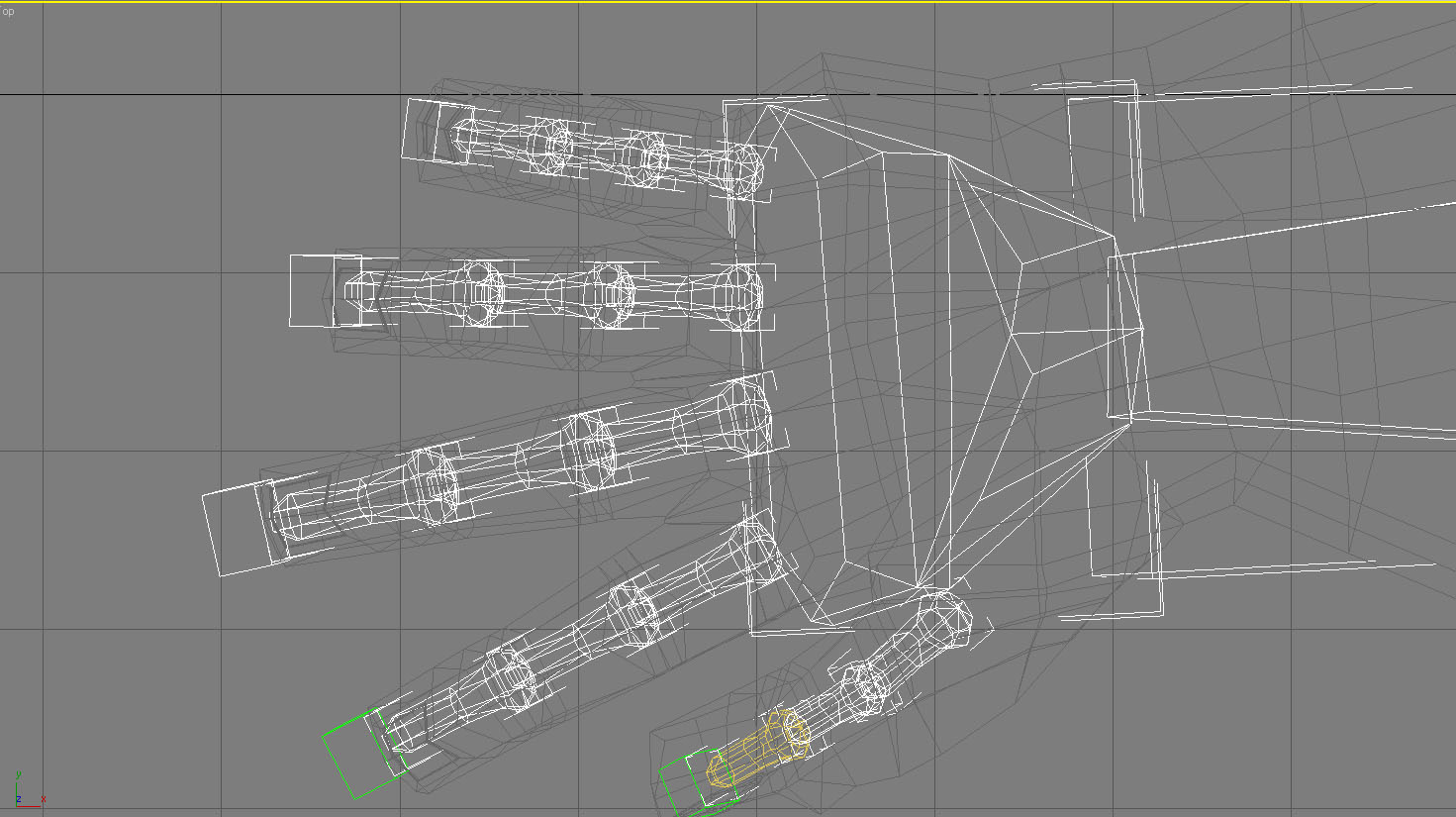 Quiero saber cómo puedo seleccionar estos polígonos manualmente para que se muevan junto con el hueso, este problema también se me presenta en otras partes del cuerpo como en los dedos de las manos y en la cabeza (que los músculos de los brazos la deforman). Muchas gracias.