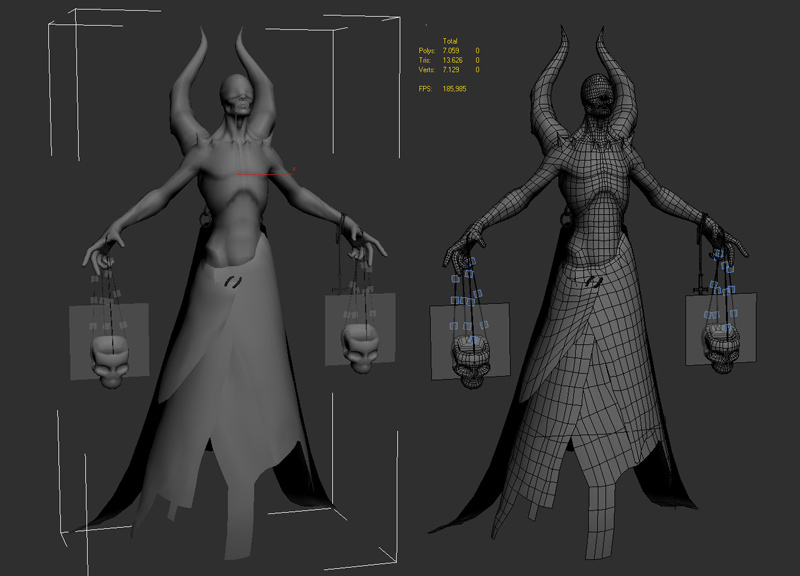 Este es un personaje que estoy haciendo para un concurso de Game Artisans se trata de hacer un personaje de pesadilla o de sueños dulces, por supuesto yo escogí pesadillas.