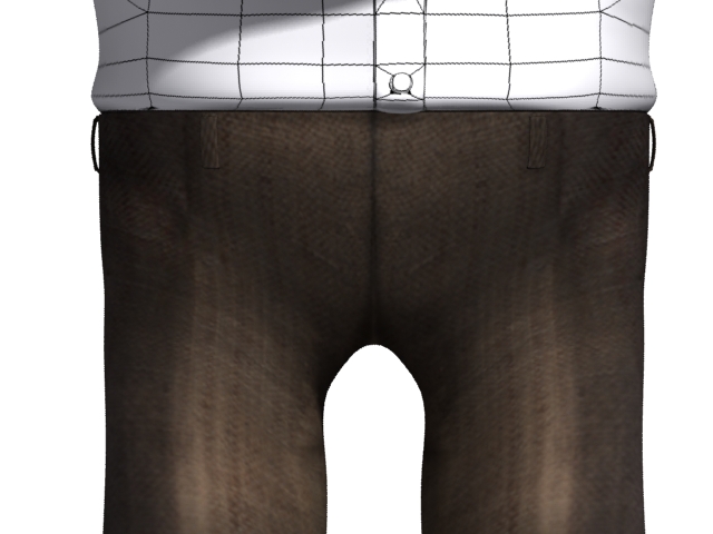 Buenas. Estoy creando al personaje de up. El modelado lo tengo, pero con la textura del pantalón me surgen dudas. Las estoy intentado hacer con el Adobe Photoshop, pero no consigo esa calidad de ninguna manera, también tengo que decir que no soy super bueno dibujando con Adobe Photoshop. Estoy buscando telas para crearmela, pero tampoco encuentro y he buscado bastante y probado muchas combinaciones. Entonces estoy pensando si se podría hacer con un material de max configurado. Os pongo una imagen de lo que he conseguido yo y del personaje de up real, estoy usando Mental Ray.