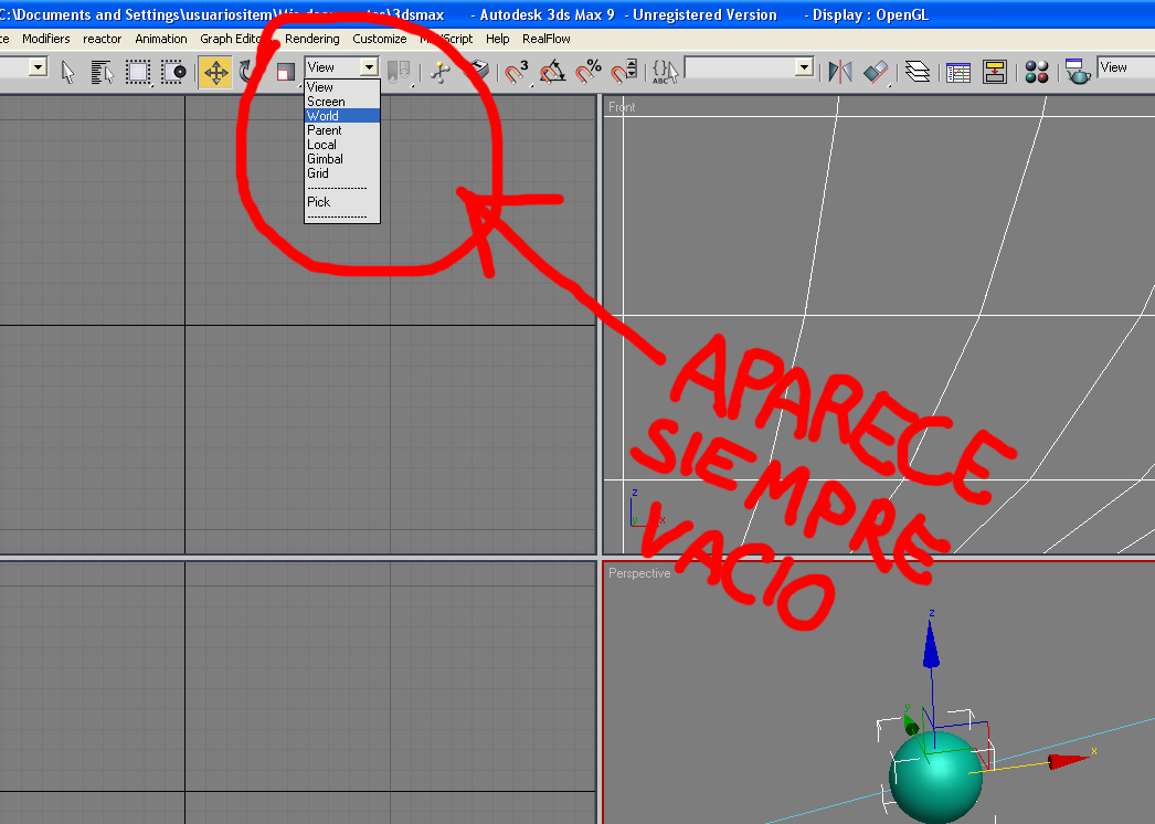 Y la otra tiene que ver con el 3dsMax 2010, resulta que lo instale en casa y no puedo cambiar los ejes de los objetos ni personas o huesos, la pestaña me aparece vacía incluso cuando la abro. Aquí os adjunto otra imagen (aunque está es de 3dsMax 9 pero en el 2010 está en el mismo sitio).