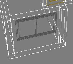 Según veo en la vista superior, la pared es más gruesa que la ventana, por eso no puedes verla. Tienes dos opciones: hacer más ancha la ventana para que atraviese la pared, o hacer más delgado el muro, hasta que sobresalgan los bordes de la ventana.