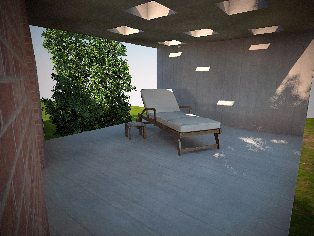 En el interior 4 omnis con una intensidad de 0,3 y las sombras Vray activadas (esto no sé si es lo correcto, pero lo he hecho para intentar dar más claridad al interior.