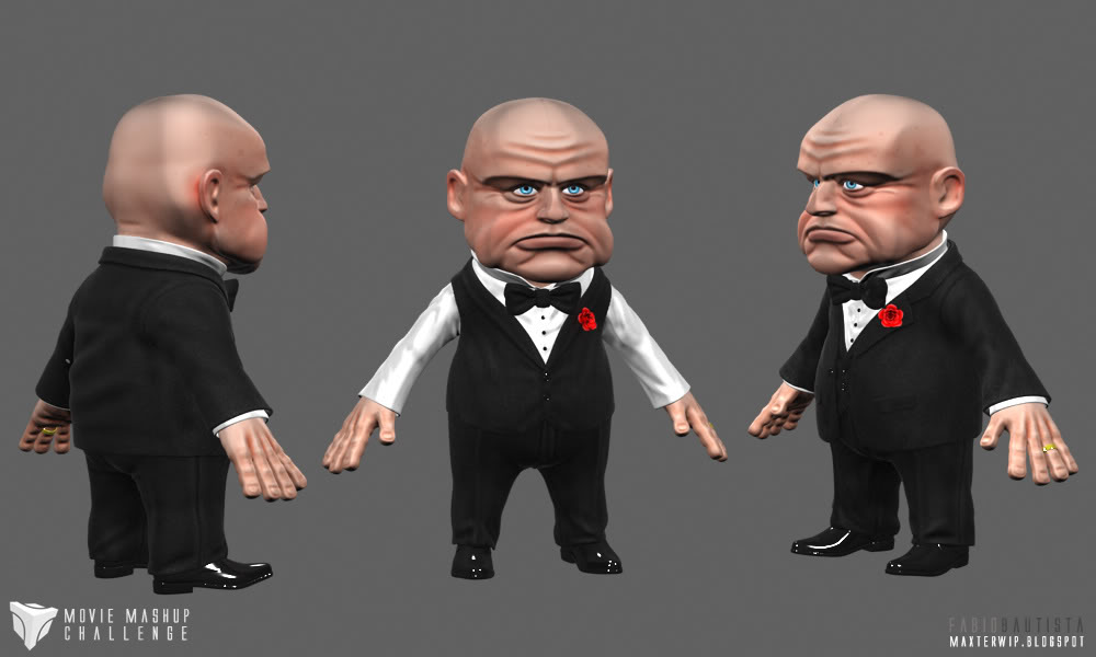 Hola, este es un proyecto que estoy trabajando para un concurso. La idea es mezclar elementos de dos películas y realizar un personaje o una escena de una de ellas con el estilo de la otra. Escogí dos de mis películas favoritas el padrino y up, así que, pensé en hacer una versión de don vito Corleone, pero tomando elementos de diseño del personaje de Carl fredricksen. Este es un diseño inicial hecho en ZBrush. Me gustaría saber que opinan de el y de paso obtener algún feedback. Gracias y saludos.