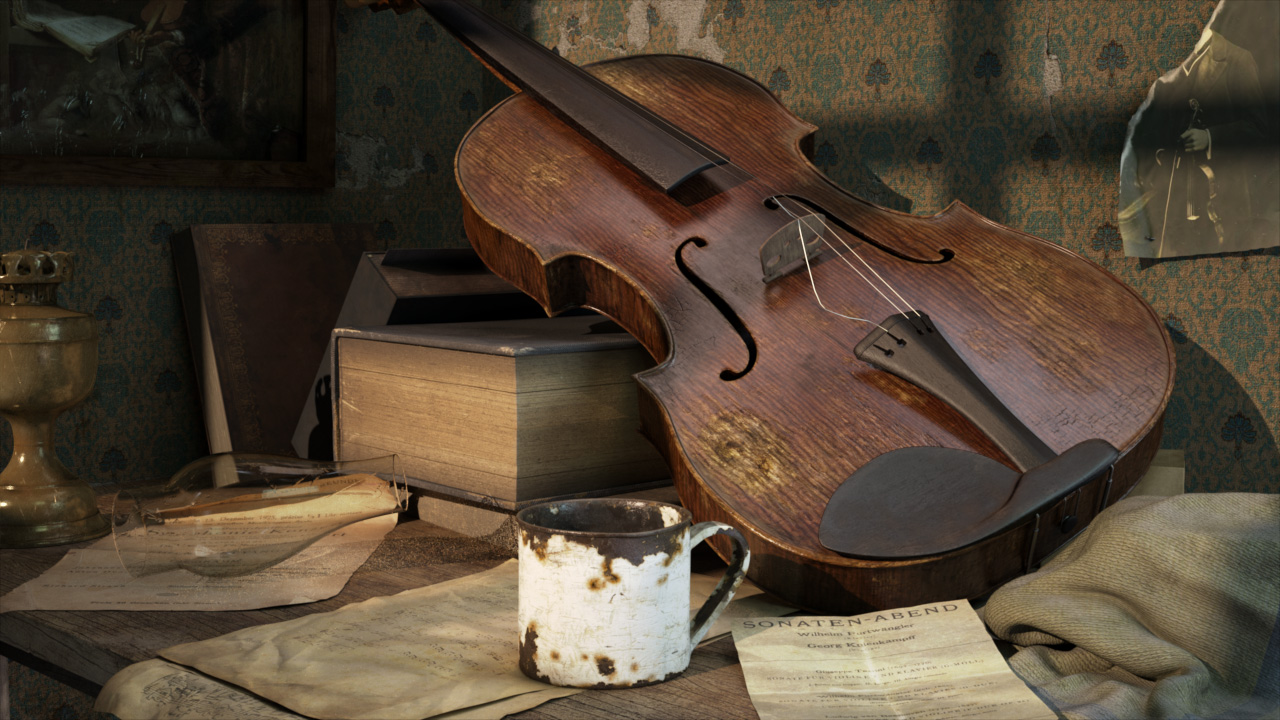 Para practicar con distintos Shaders y texturas he creado esta escena centrada en un viejo violín. He usado XSI, Adobe Photoshop y Fryrender.