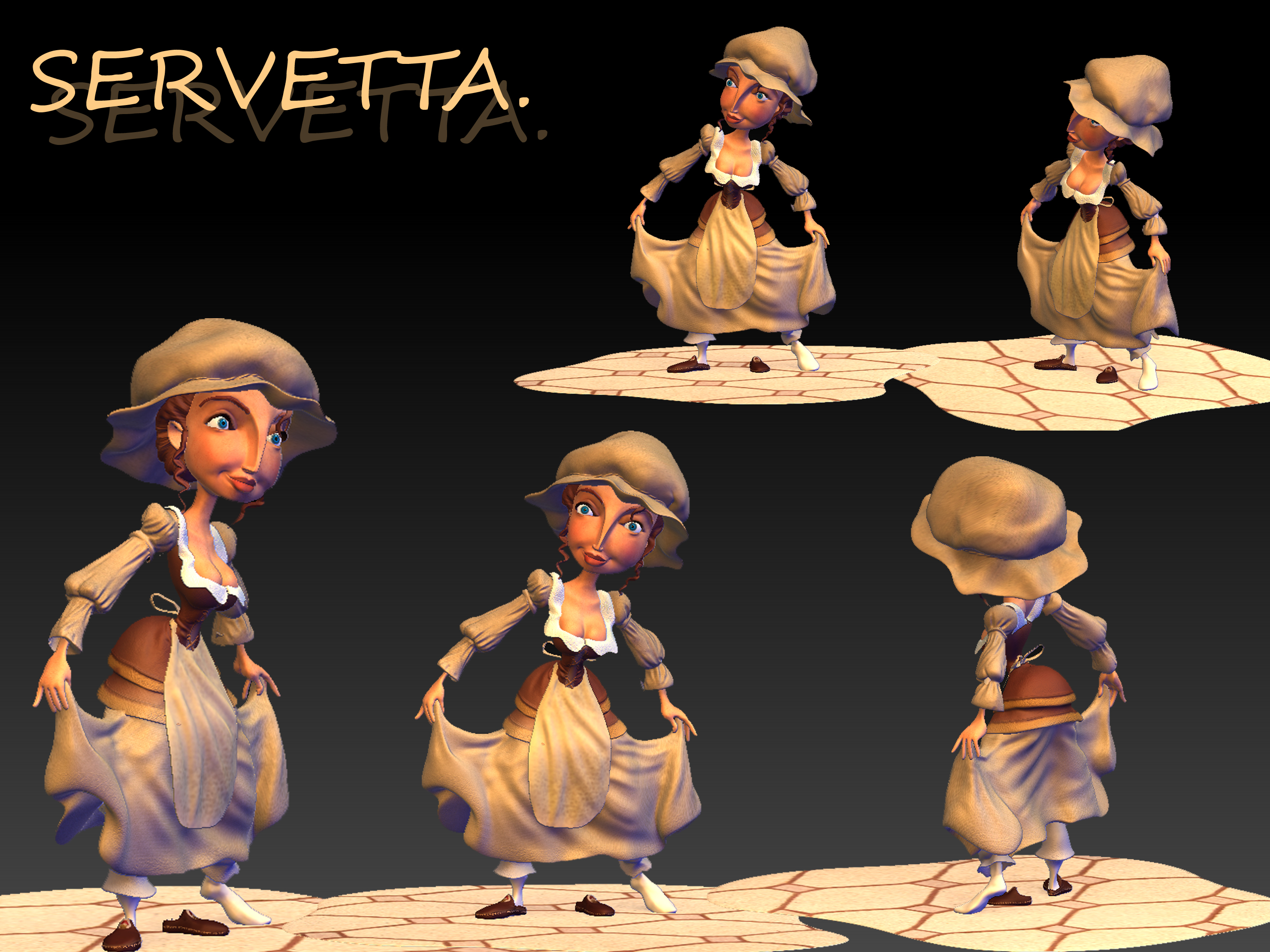 La servetta, es decir, la criada, que usando sus armas de mujer termina ligándose al docttore y así se humilde en.