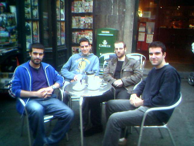 A ver, tentador, pones la fotografía, pero no haces las presentaciones ni nada. El pringado de más a la izquierda soy yo mismo, y siguiendo para la derecha, tentador, Fiz 3d y Martiño, el programador del mundialmente conocido videojuego Glest (del que yo soy el grafista no se nota la publicidad subliminal ni nada eh. www.glestorg).