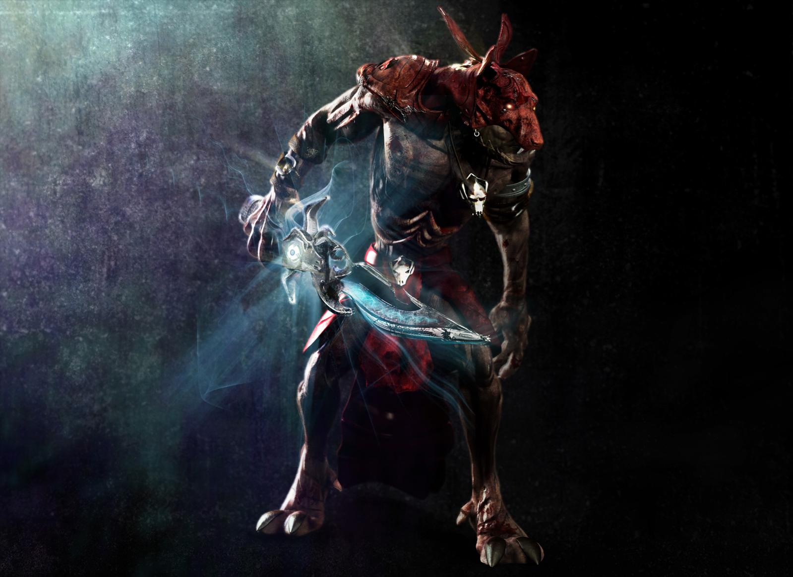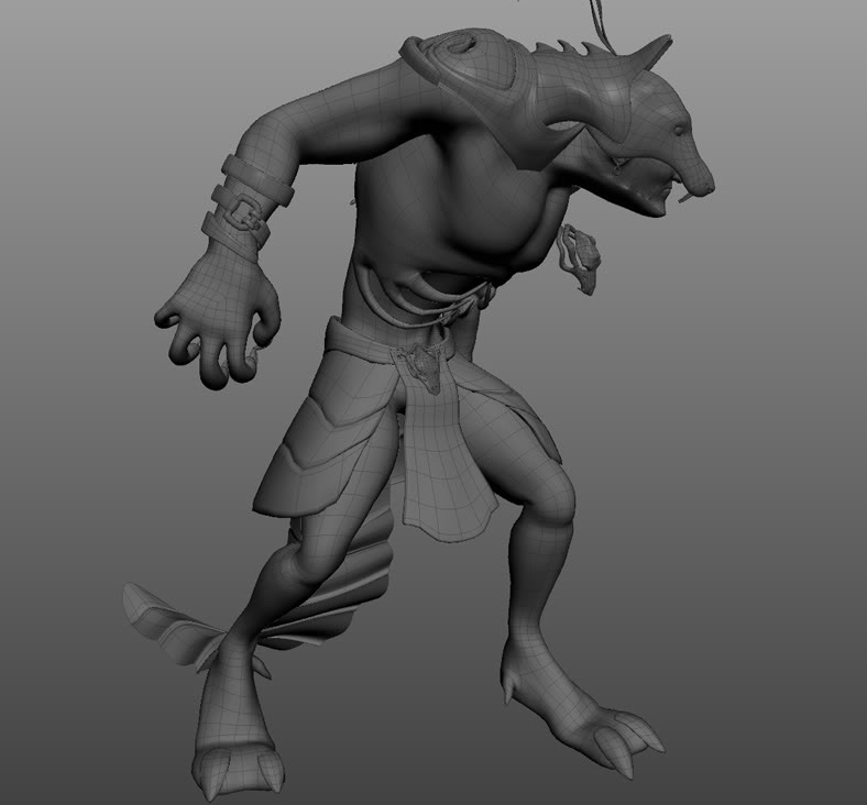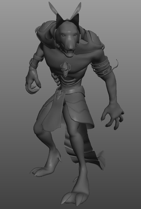 Hola José Vicente. Así a primera vista es una gran imagen, me dice mucho de su trabajo, y sobre todo destaco su postproducción y la presentación, muchos trabajos fallan en eso. Aunque dices que partiste de un lobo, para mí a perdido la forma de este, me recuerda más los skavens de Warhammer Fantasy. Quizá por se confunden las orejas y el nudo del pañuelo, abría dejado quizá las orejas destapadas, en el tono de la piel claro.