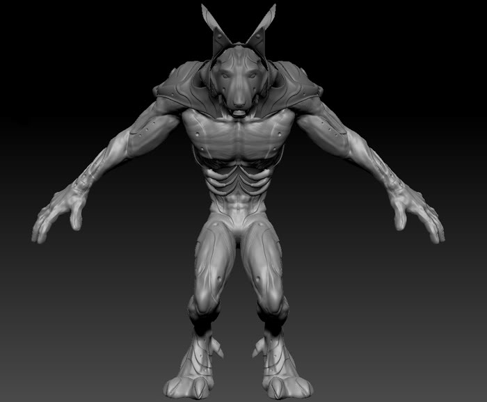 Esta imagen empezó como un proyecto con 2 ilustradores (pilar berrio y Rubén romero) exploraron desde bocetos iniciales de un lobo, hasta la creación de este guerrero, comencé explorando formas para llegar al modelo final en 3d, el proceso me tomo bastante ya que siempre estaba aprendiendo algo nuevo de anatomía, modelado y escultura digital, texturizar, dibujar, estas eran nuevas cosas que aprendía y que le añadían nuevas características al personaje.