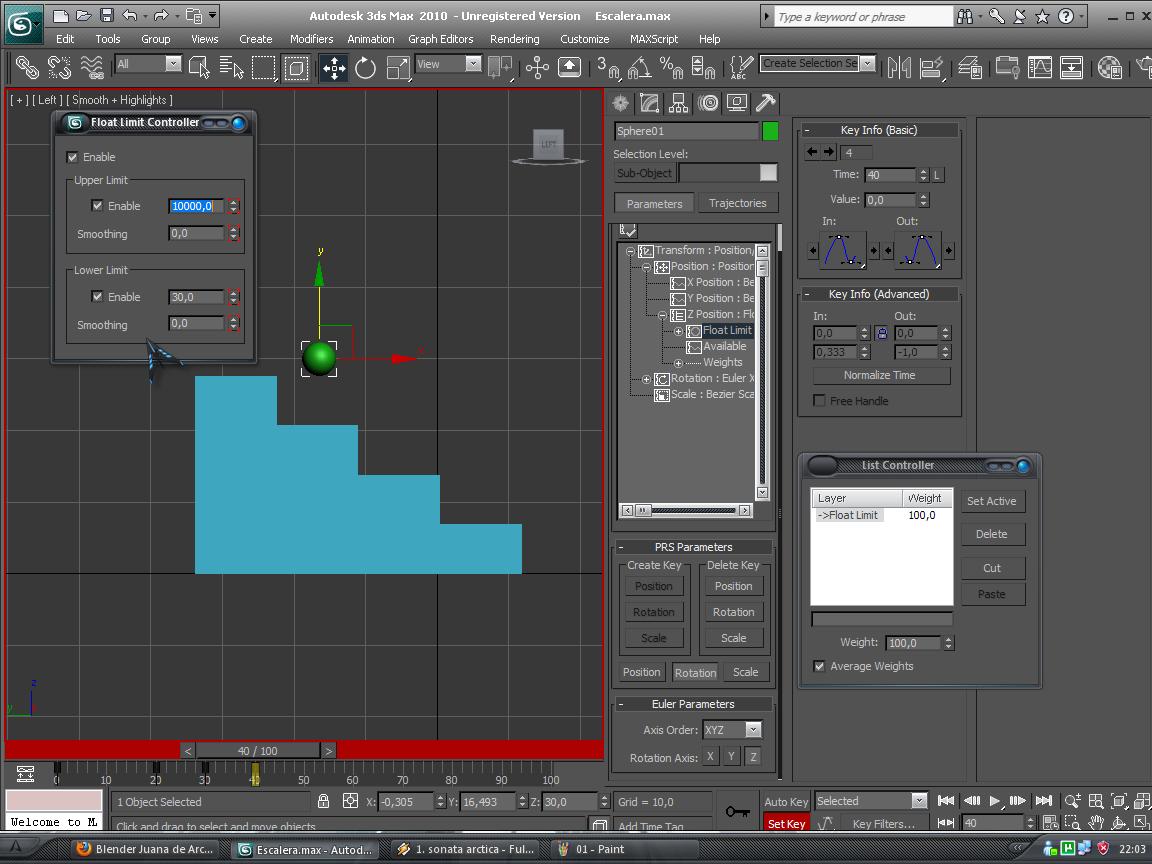 Thumbs up Animación de una pelota rebotando por escalera con float limits en 3ds Max