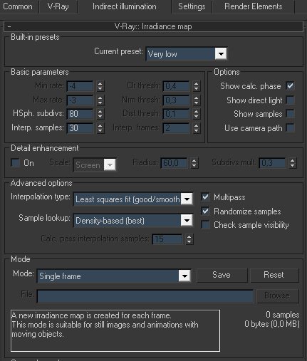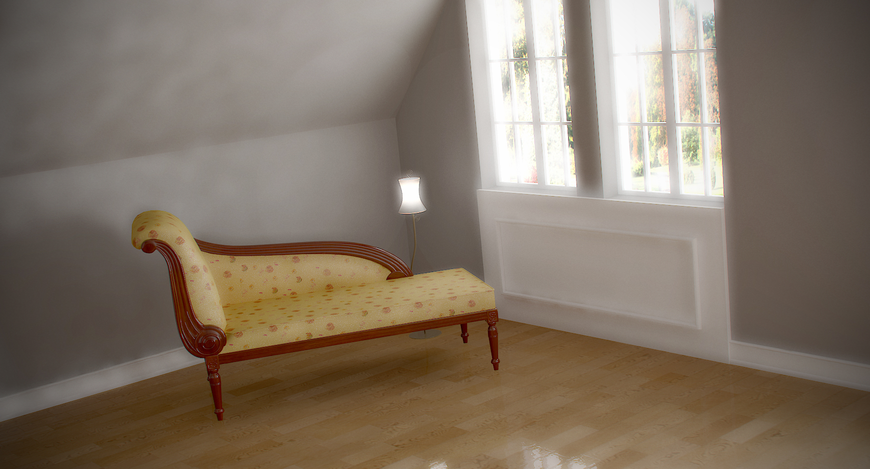 He usado una cámara Vray física, con f-number 8 y shutter 250, en las ventanas dos luces Vray y un Vray Sun y Sky.