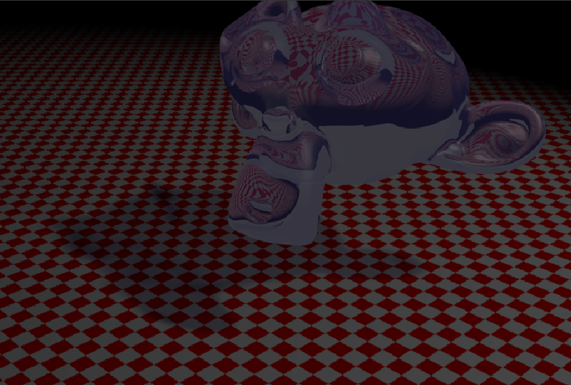 Hola gente, 3dpoder. Estoy en un problema, probando probando y probando, pero nada. Tengo una escena simple con el mono y un material vidrio aplicado, un spot con rayshadows y un plano (el piso).