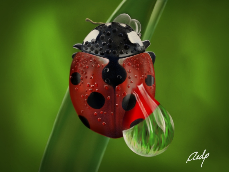 Hola amigos, quería compartir otro trabajo realizado en Gimp, este escarabajo coccinellidae, o cómo lo conocemos por aquí mariquita.