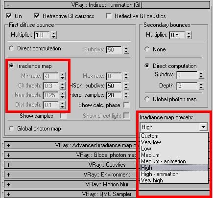 Oye Dideje después de haber leído el magnífico tutorial publicado en los foros sobre el Vray, me ha saltado una duda respecto al cuadro de Irradiance Map presets la cosa es de que una vez hecho el cálculo de fotones y ya sabes el ajuste de los parámetros para tirar el render final no sé si será lo mismo en lugar de estar tirando pruebas.