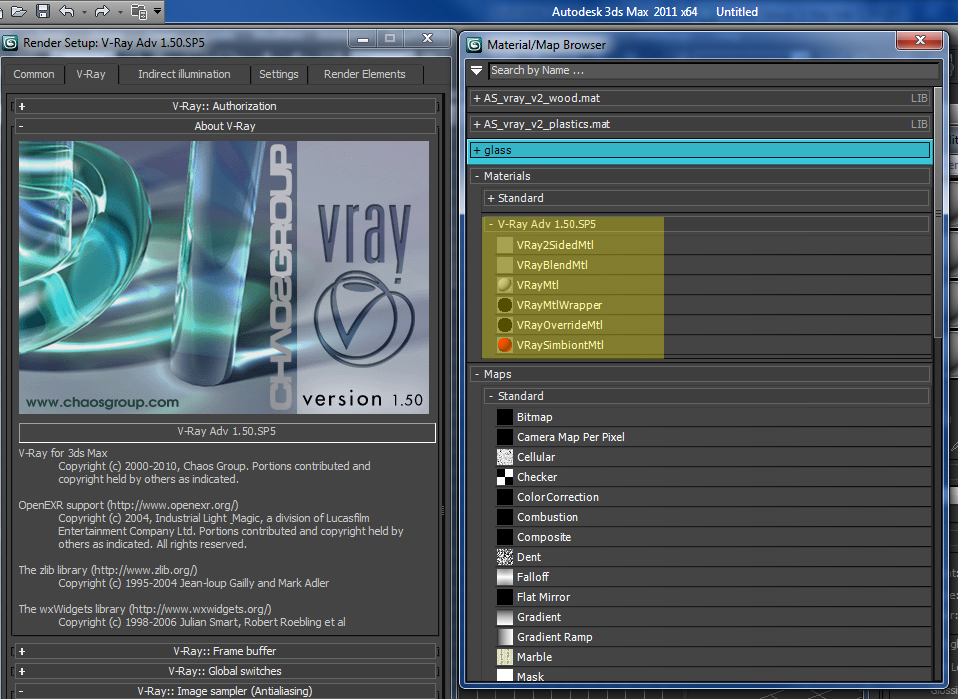 Hola a todos/as: He instalado max 2011 y veo que en el nuevo editor de materiales me faltan algunaos materiales Vray que con la versión 2010 si tenía.