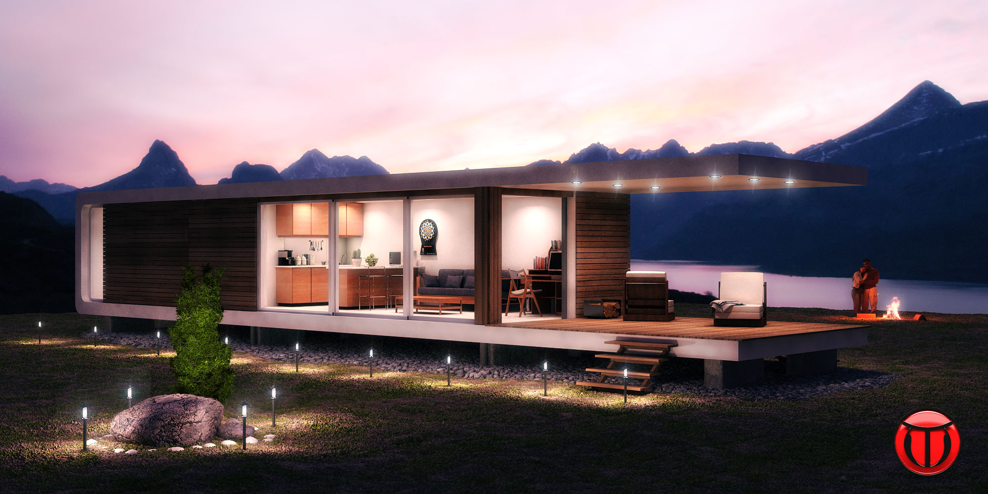En cuanto al ángulo, es el que quería para que por encima de la casa se viera parte de las montañas y el cielo con el atardecer, si variaba el ángulo se veía demasiado el pasto, no se probaré lo que dices a ver qué tal.