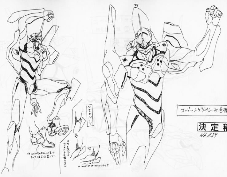 Voy a contribuir con algunas imágenes de los evas que pueden servir de referencia para establecer la escala con los pilotos y el entorno urbano.