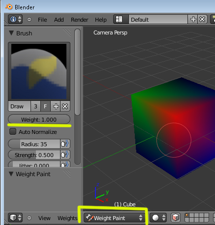 Weight sale en varios sitios, por ejemplo, estando en la pintura de vértices. Weight Paint, y se cambia el valor en el panel de la izquierda (tol shelf - Barra de herramientas).