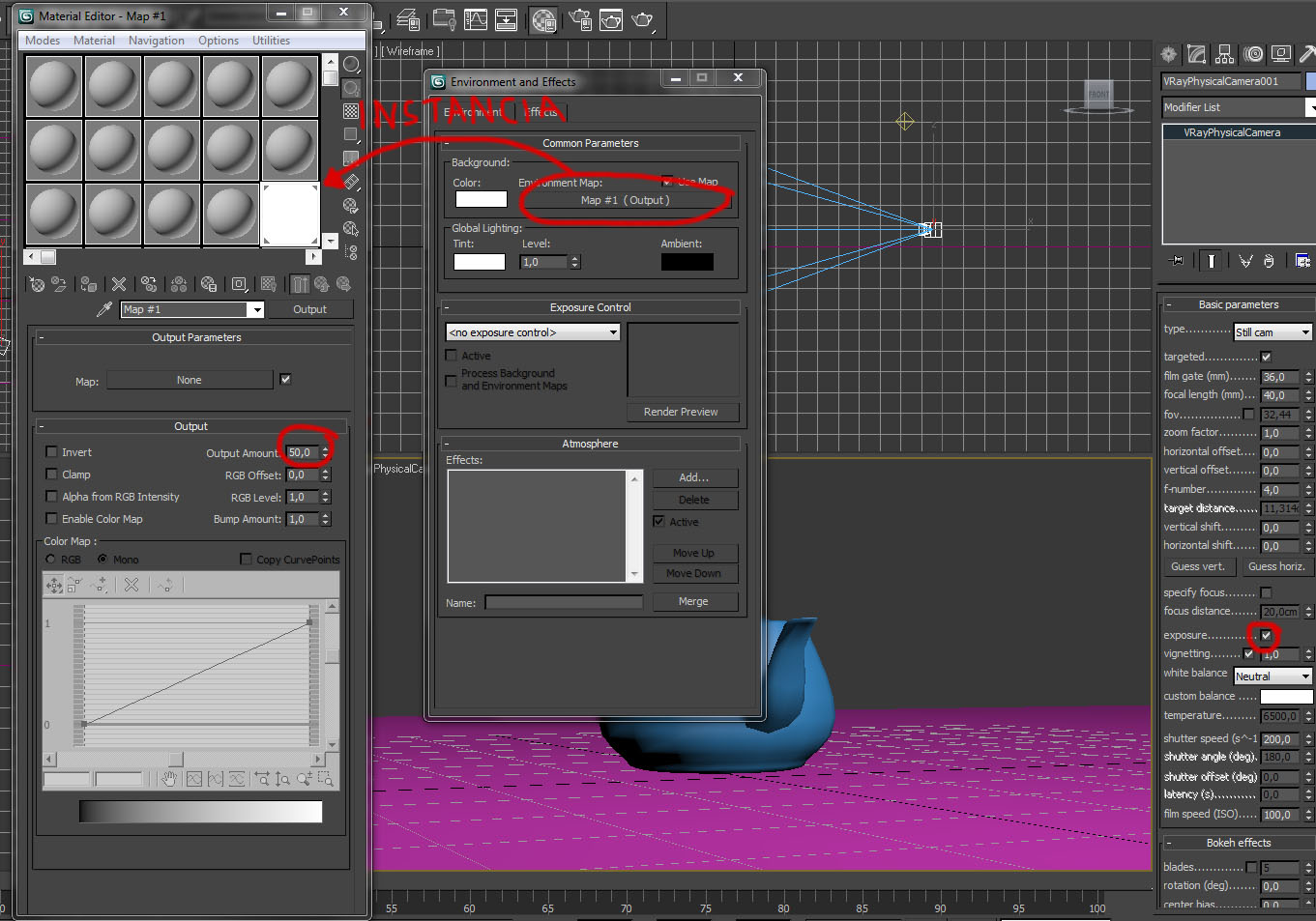 Tengo exactamente el mismo problema, pero yo es con una imagen de fondo, al iluminar un interior la imagen que hay de fondo no se me ve (se ve muy oscura por que si le subo la exposición se empieza a ver algo)por la ventana del interior que estoy iluminando y a la Target Direct que tengo puesta como sol le tengo que poner un multiplicador alto para que le llegue luz a la habitación por la ventana, le tengo que poner 50 de multiplicador para que ilumine.