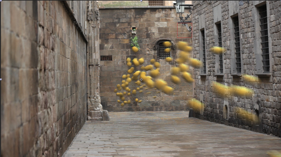 Saludos a todos. Hace tiempo que no público por estos lares ya que he estado algo ocupado últimamente. Ando con una pieza en la que tengo que integrar unos limones por la calle. He echo un sistema de partículas, en el que una bandada de limones se pasean por ahí. Bien.