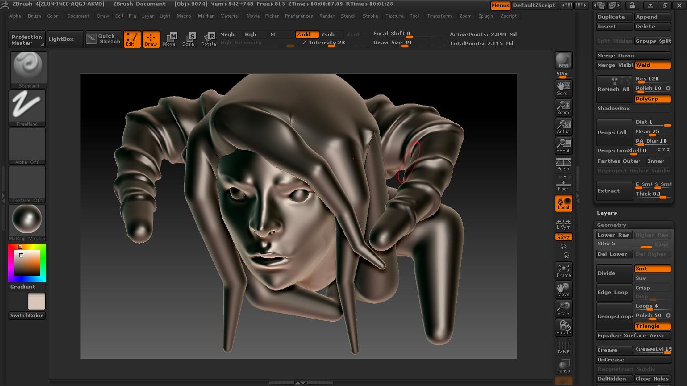 Y la 3 pregunta m, así va la cosa, hice un personaje, lo subdividi hasta el 6 y no había problema, pero al llegar a la subdivision 8 :s me botaba, memoria unsuficiente, entonces dije ok es mi memoria, debo recalar que este personaje lo hice de una pieza sin subtool, ahora e vuelto a hacer otro personaje, pero esta vez con subtool como el sombrero y la ropa, artículos etc, y todos cada una la dividí en 6, mi pregunta es = se va sumando todas las subdivisiones? Si son dos subtool cada una de 6, entonces son 12? Mientras más subdivisiones tenga más memoria generara, entonces cuando trata de subdividir a un personaje hasta la 8, no me permitia, perdonen si suena algo confuso, soy nuevo usando esto y no las comprendo del todo, u__u un poco de asesoría seria de mucha ayuda, gracias.