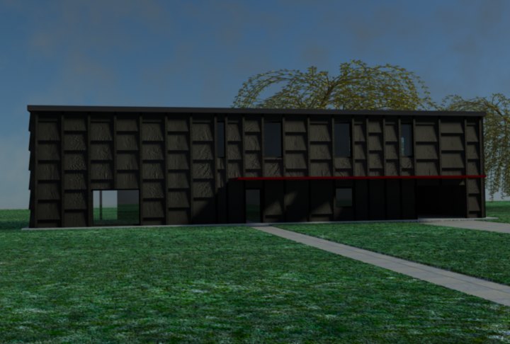 Hasta aquí llego, me gustaría pulirlo más (en especial el césped), pero no puedo seguir con esto, necesito abrir tiempos ahora, seguramente, después lo retome, mientras hace el segundo render, les dejo cómo se ve esto, no estoy para nada contento, pero los exteriores no se me dan bien, habrá que seguir trabajando duro.