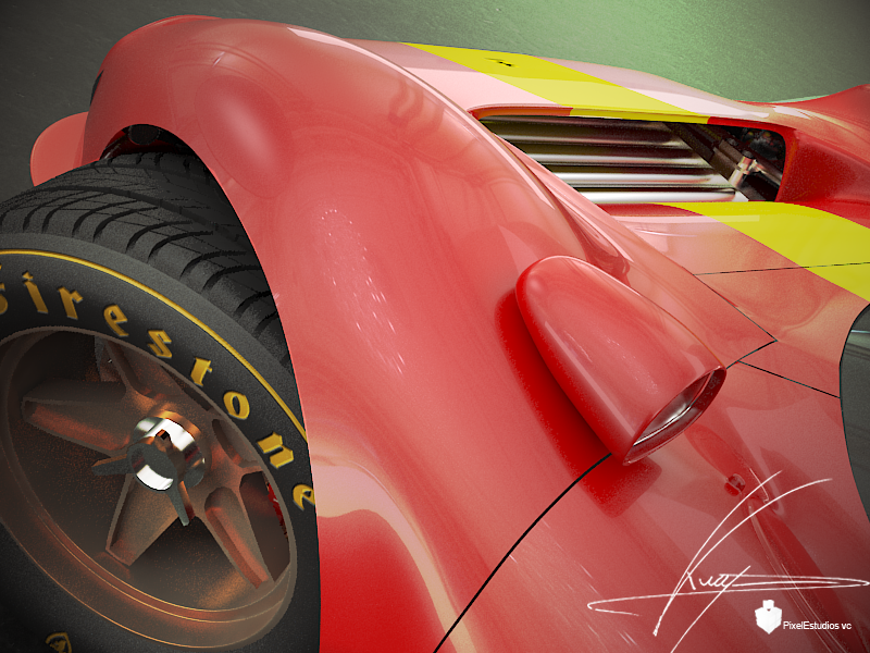 Me agrada mucho este modelado, y la forma de presentarlo, las vistas son impactantes, sólo hay algo que no me termina de convencer, la carrocería, aunque está muy bien modelada, parece que fuera muy liviana o por decirlo, como una hoja de papel, creo que es en el arco donde se encuentran los arcos, que no dan la sensación de grosor del metal, sino es como una lámina super delgada, no sé cómo podrías solucionarlo porque no tengo experiencia modelando vehículos, pero al verlo me da la sensación que te decribí anteriormente. Si logras darle un toque en esa zona, es un excelente trabajo. Muy bueno en verdad.