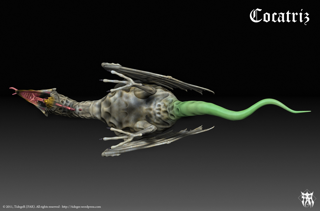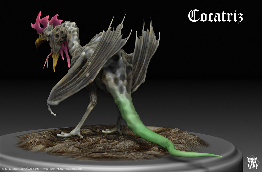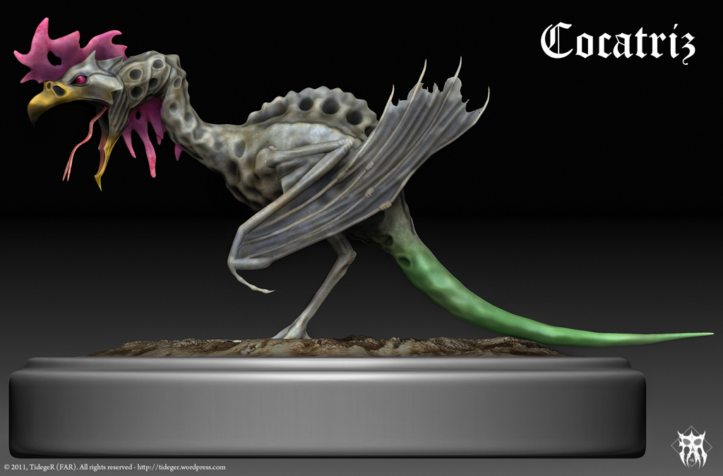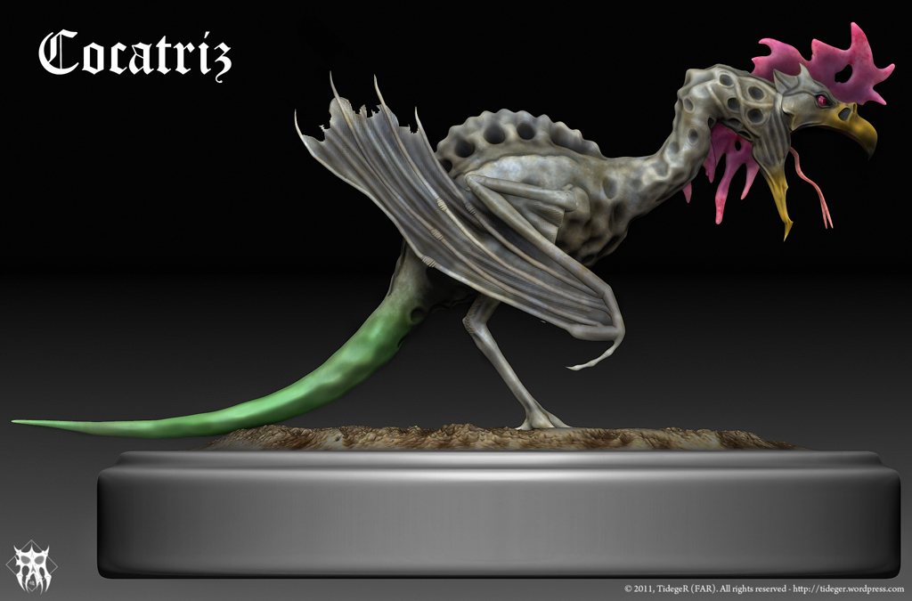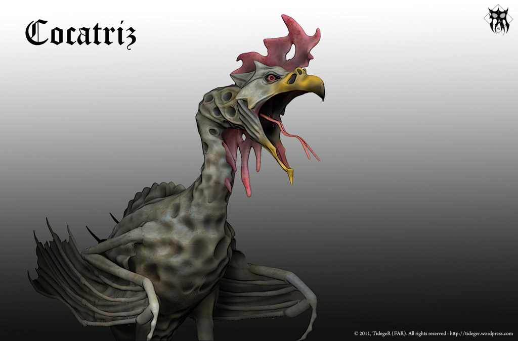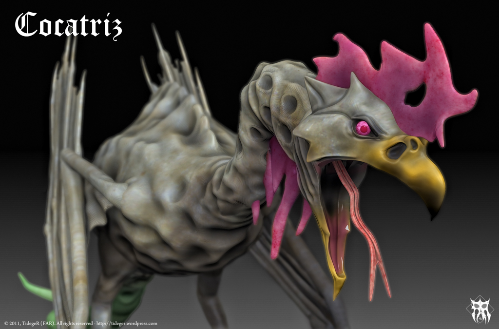 Terminado el modelado, texturizado y renderizado de la cocatriz. Utilice Polypainting para texturizar, por medio de la opción spotlight que es una forma muy interesante de aplicar las texturas y este fue el resultado de todo el proceso.