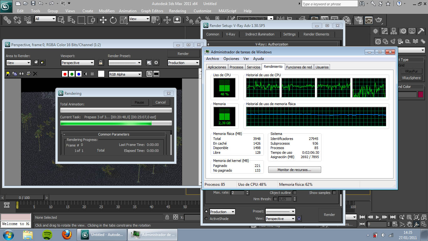 Hola, tengo una pregunta, estoy haciendo una prueba, renderizando, abro el administrador de tareas para ver el rendimiento de la CPU y cómo se puede apreciar en la imagen no llega ni al 50% de su capacidad. ¿esto es normal? Se supone que al estar renderizando la CPU debe ir a tope, ¿no? Yo no he tocado ninguna opción de asignar Cores ni nada de eso. ¿se puede modificaré un saludo y gracias.