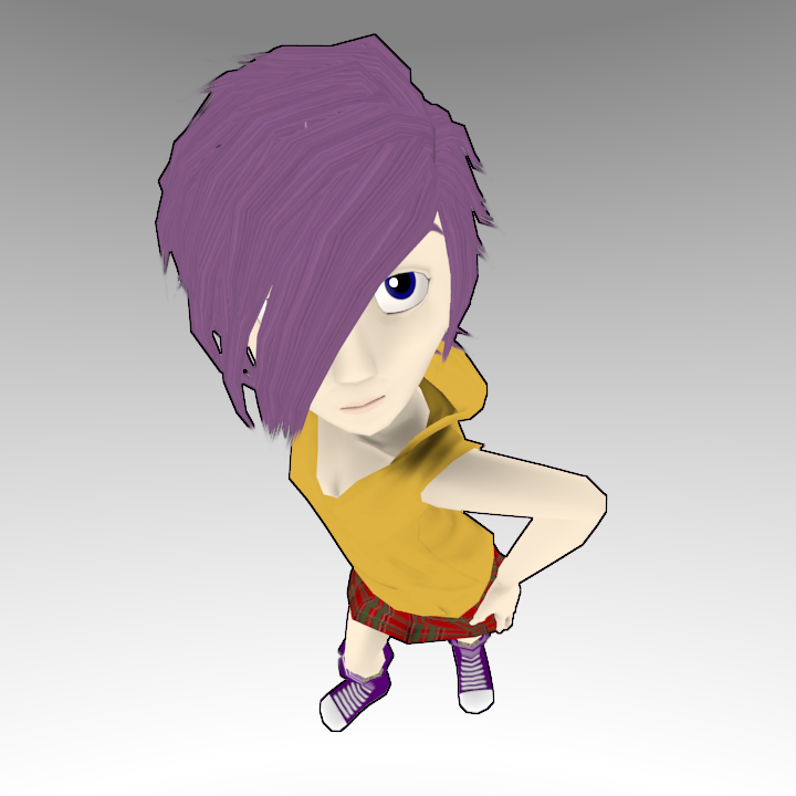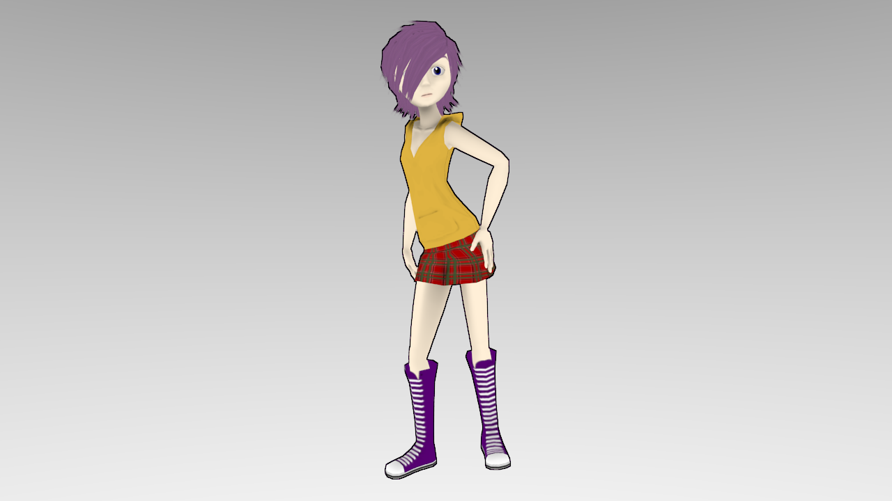 Simplemente una personaje Low-poly (aunque al final creo que me exedí un poco con los polígonos ) on un estilo medio anime y texturas más bien ton.