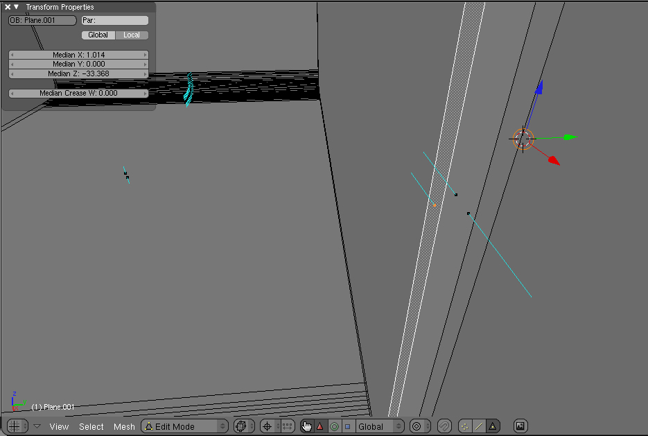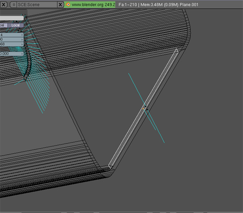 Lo cual me da muchos dolores de cabeza, entre ellos los más problemáticos: reflejo de superficie a la hora del render (uso Yafray) y modelado, ya que se hace imposible desplazar un plano en la dirección de su verdadera normal, que no es la que muestra Blender.