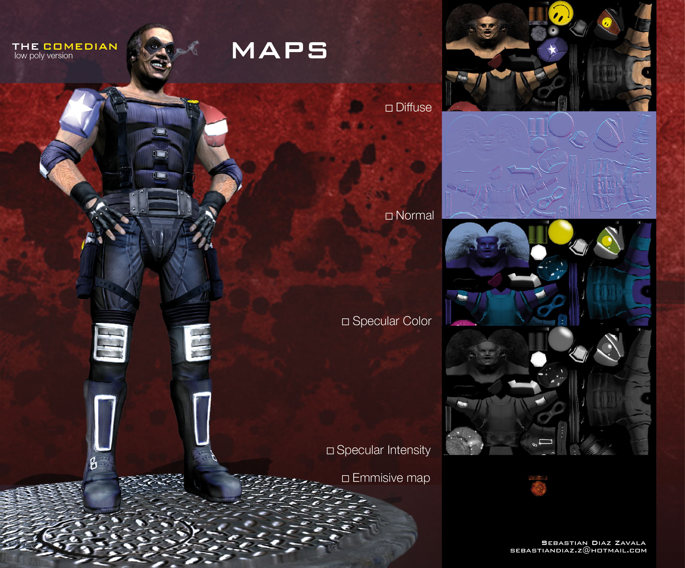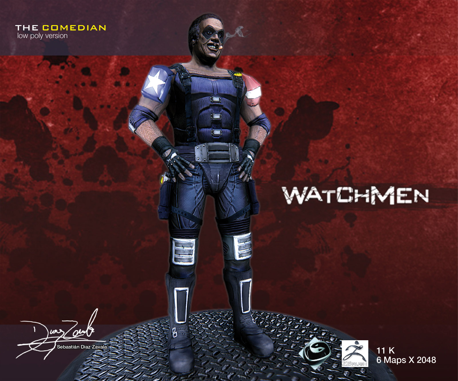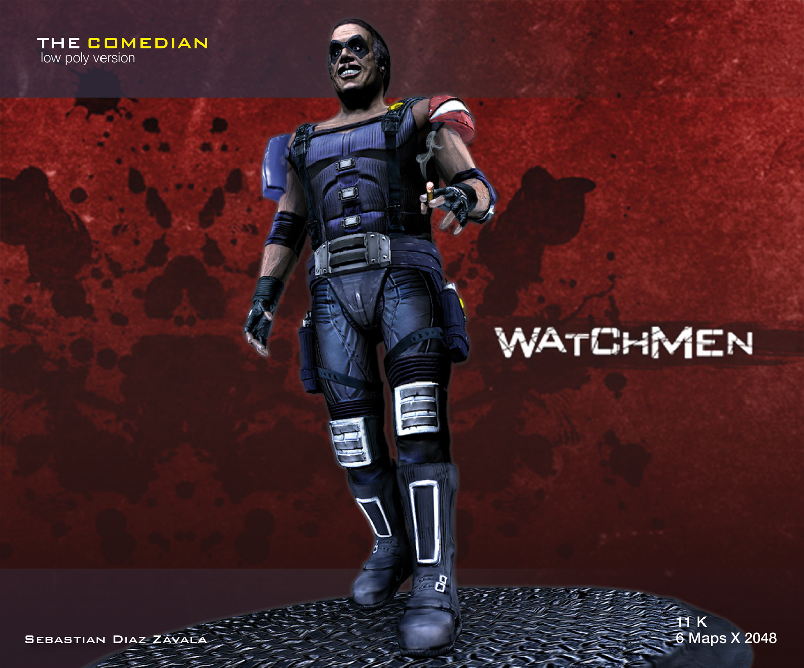 Hola amigos, les dejo este trabajo personal, el comediante. Esta texturizado, riggeado y renderizado en un Game Engine. Les dejo algunas imágenes dentro del proceso y las tomas finales, espero que les guste. Saludos.