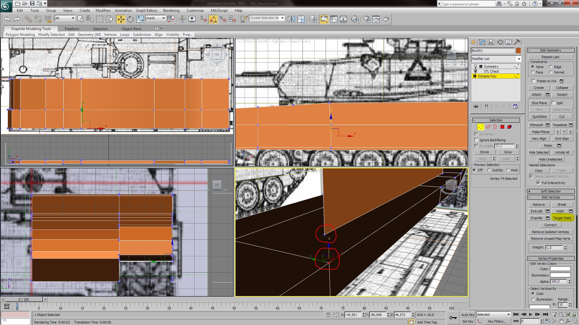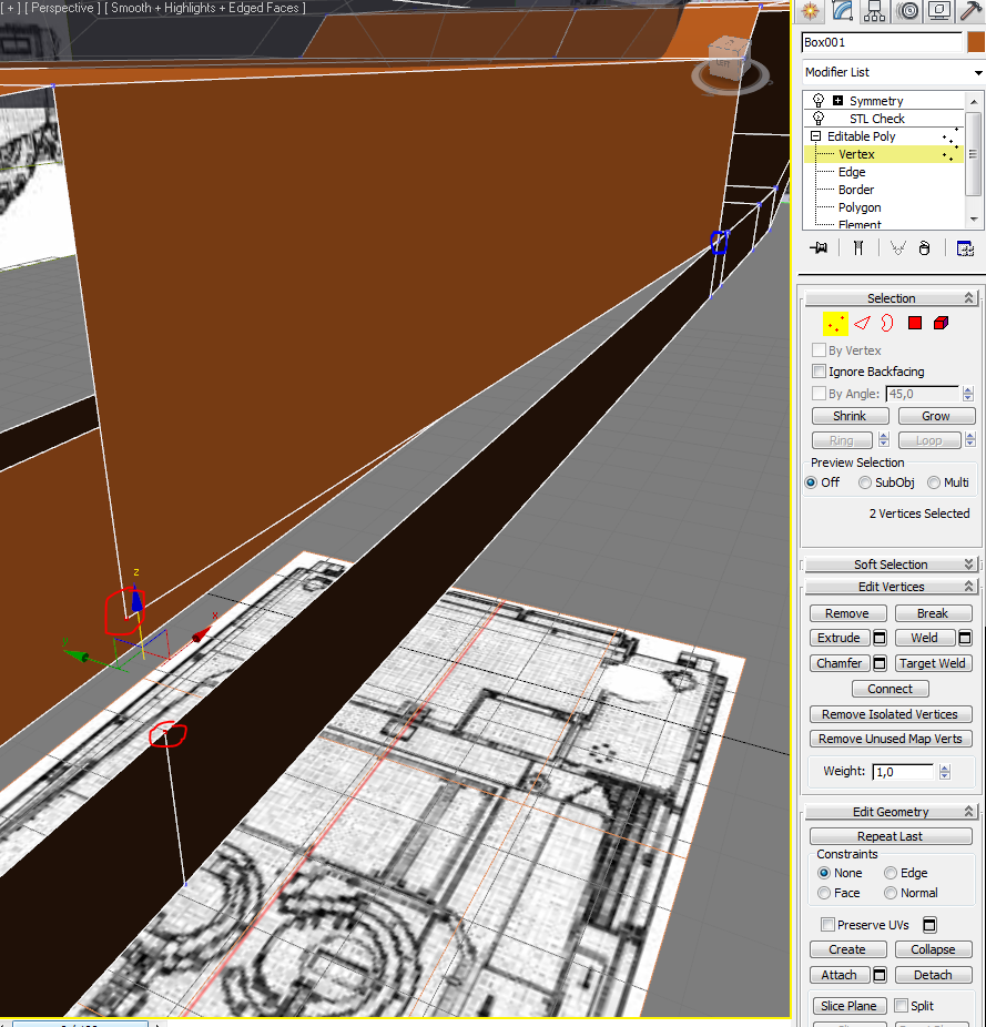 Software: 3ds Max 2011 x32. Buenas, antes de preguntar he intentado revisar alguna respuesta parecida por el foro o Google, pero no he conseguido ninguna que se adaptara a mi problema. A lo mejor es una tontería, pero es que, es mi primer proyecto sin seguir tutoriales y de momento no sé muy bien como ir avanzando.