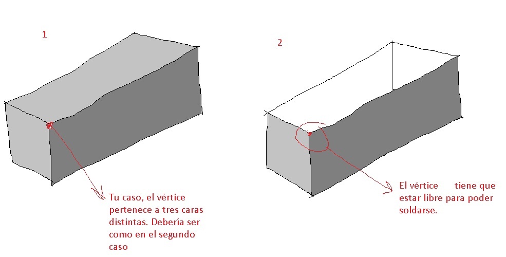 Bueno, a lo que iba, me gustaría utilizar la herramienta target weld para unir dos vértices, pero no sé porque, no me deja, no me pasa en todos los vértices, solo en algunos en específico. Para mostrar mejor el problema cuelgo una captura: