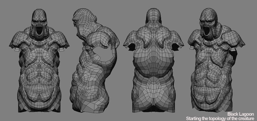 Topología base de la criatura para poder comenzar a modelar con ZBrush.