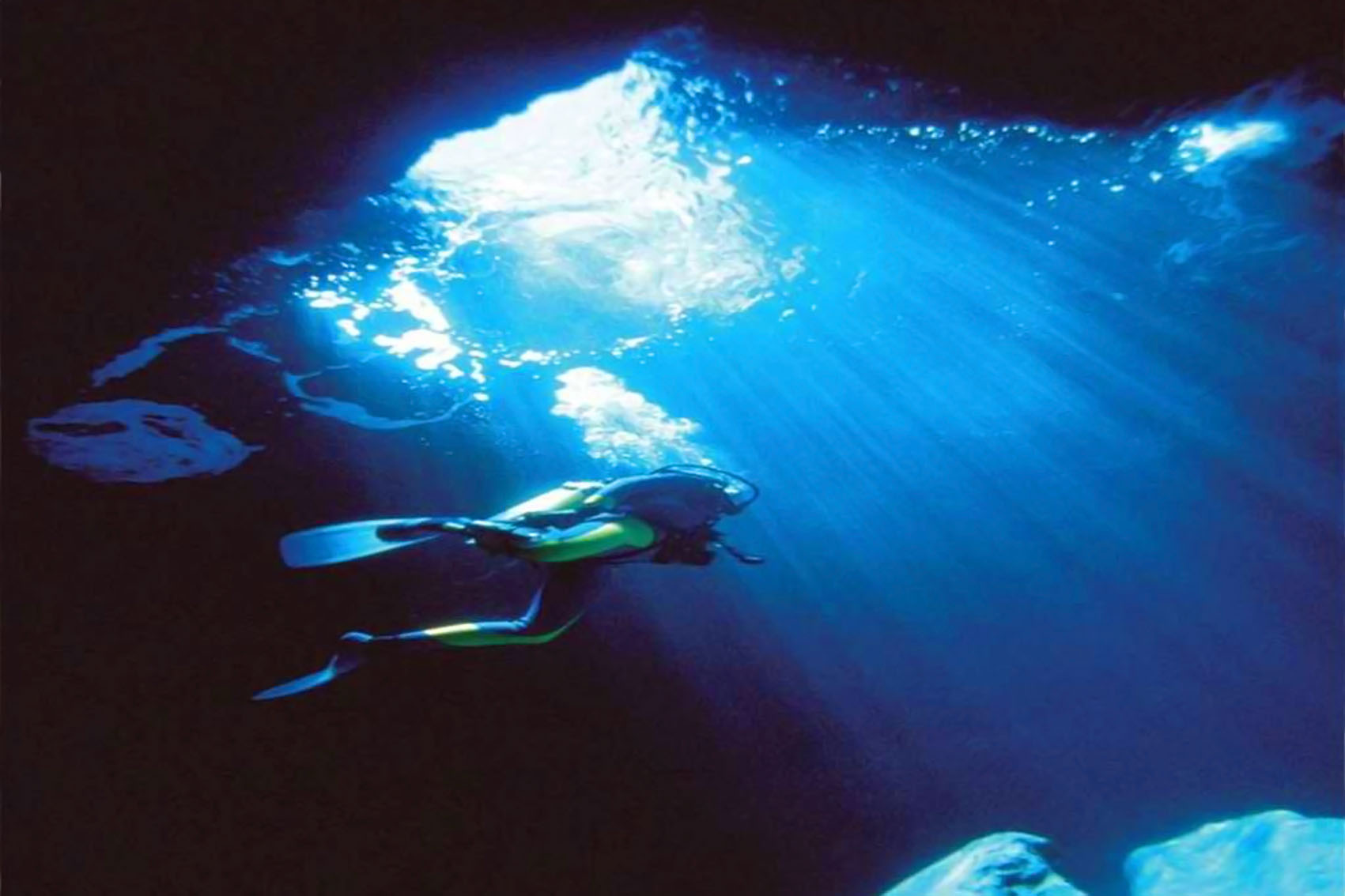 Y una cerca de la superficie, pero donde no se aprecia el fondo, puede ser en alta mar perfectamente. http://www.google.es/search?Q=cuavas...w=1920&bih=875 y mi favorita, una tétrica cueva submarina.