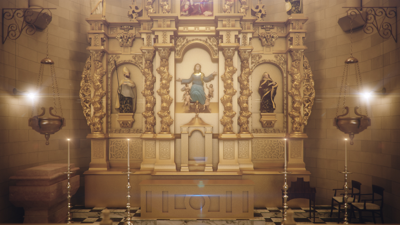 Hola mi nombre es Jesús caballero y publico un trabajo realizado hace poco tiempom, mi parte ha sido la iluminación, render y mensaje, el arduo trabajo se lo han llevado mis compañeros con el modelado, sobre todo los retablos de la catedral.