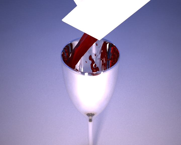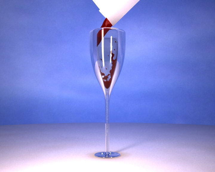 Estoy utilizando Vray con sus respectivos materiales. Pero el problema es el reflejo que se hace en el vidrio que no me deja ver el vino.