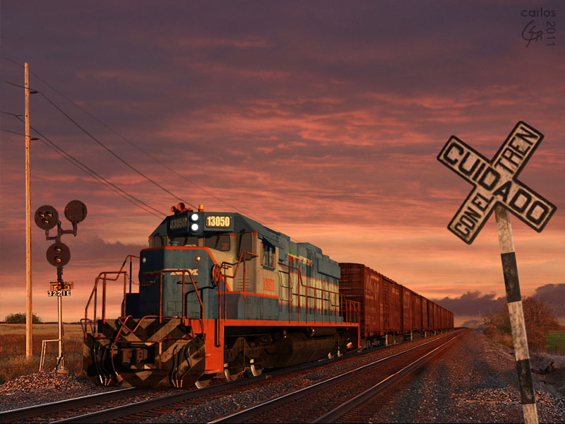 Modelé la locomotora en AutoCAD a partir de los planos básicos de una máquina sd-40, rendericé en 3ds con Vray e hice los montajes en Adobe Photoshop y los materiales y texturas. Este proyecto lo hice por una curiosidad inmensa ¿cómo se vería el tren cuando pasaba por cholula? Una de las máquinas más enormes e imponentes cuando aún existía ferrocarriles nacionales de México era la diésel-eléctrica sd40 de 6 ejes.