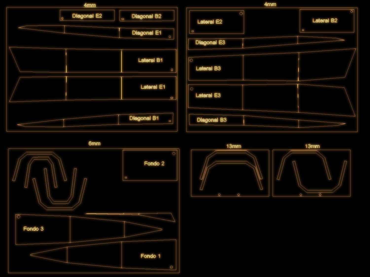 La canoa es de terciado fenolico, son como chapas de maderas de 6 milímetros de espesor.