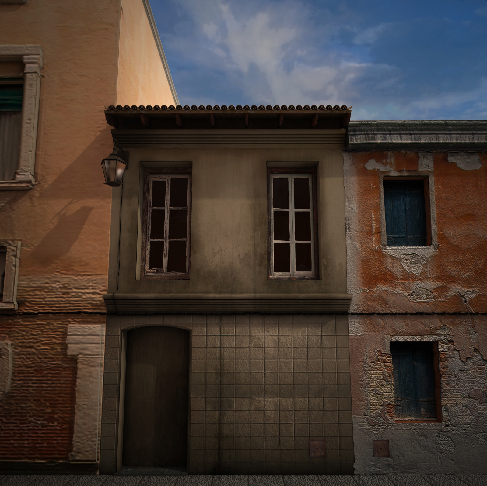 Yo le agregaría alguna que otra porquería al piso, variale un poco las texturas a las ventanas que se ven algo repetitivas, aunque todo depende de la velocidad y lo que enfoques en tu animación, y por ahí no vale la pena. Saludos y a la espera.