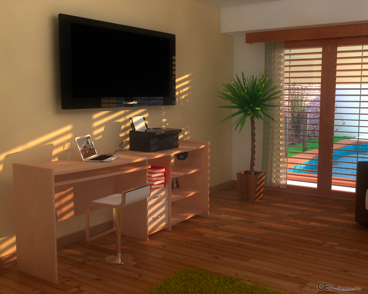 Les dejo para que me hagan todas las críticas que les parezca pertinentes un interior que hice ayer en un rato que tuve de pausa al estudio. Espero les guste y ya saben, todo lo que se le pueda exprimir a la imagen es bienvenido ya que de los errores se aprende.