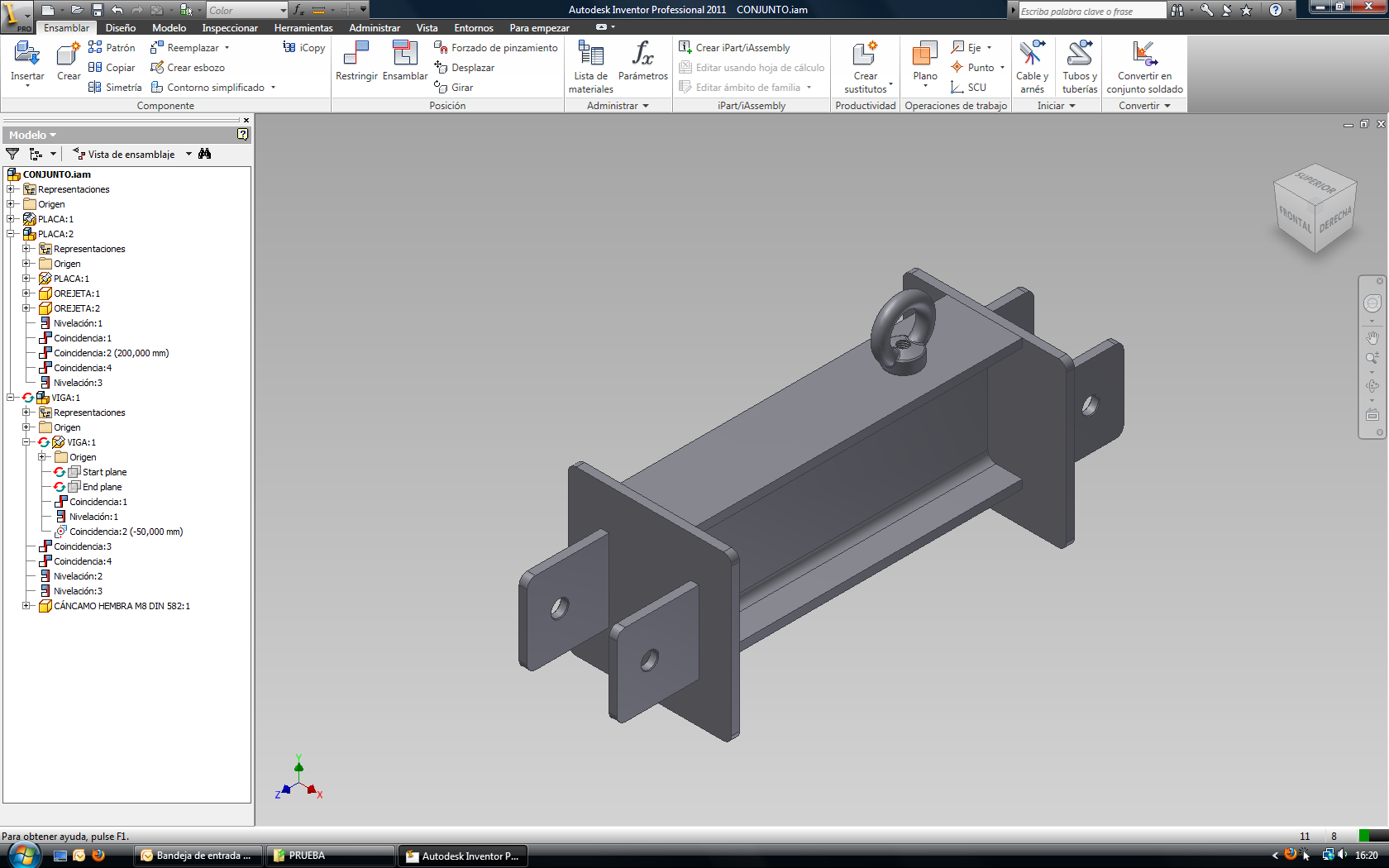 Quiero poder cambiar la distancia entre los subensamblajes laterales, y que el subensamblaje central se modifique automáticamente, este subensamblaje central esta formado por piezas ipt y por un elemento del centro de contenido (es el que interesa que se cambie de longitud, placa-contraplaca-viga). Un saludo y gracias.